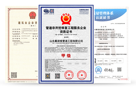 山東戴諾維管道工程有限公司位于美麗的黃河入海口-中國東營,是從事管道內(nèi)襯修復的專業(yè)化公司,主要業(yè)務有:管道非開挖內(nèi)襯修復,管道內(nèi)襯PE管修復,管道內(nèi)襯不銹鋼修復等。